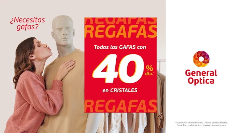 REGAFAS 2 de gen. 2025 - 2 de març 2025 Todas las gafas con 40% dto. en cristales Publica en: 2 de gener de 2025